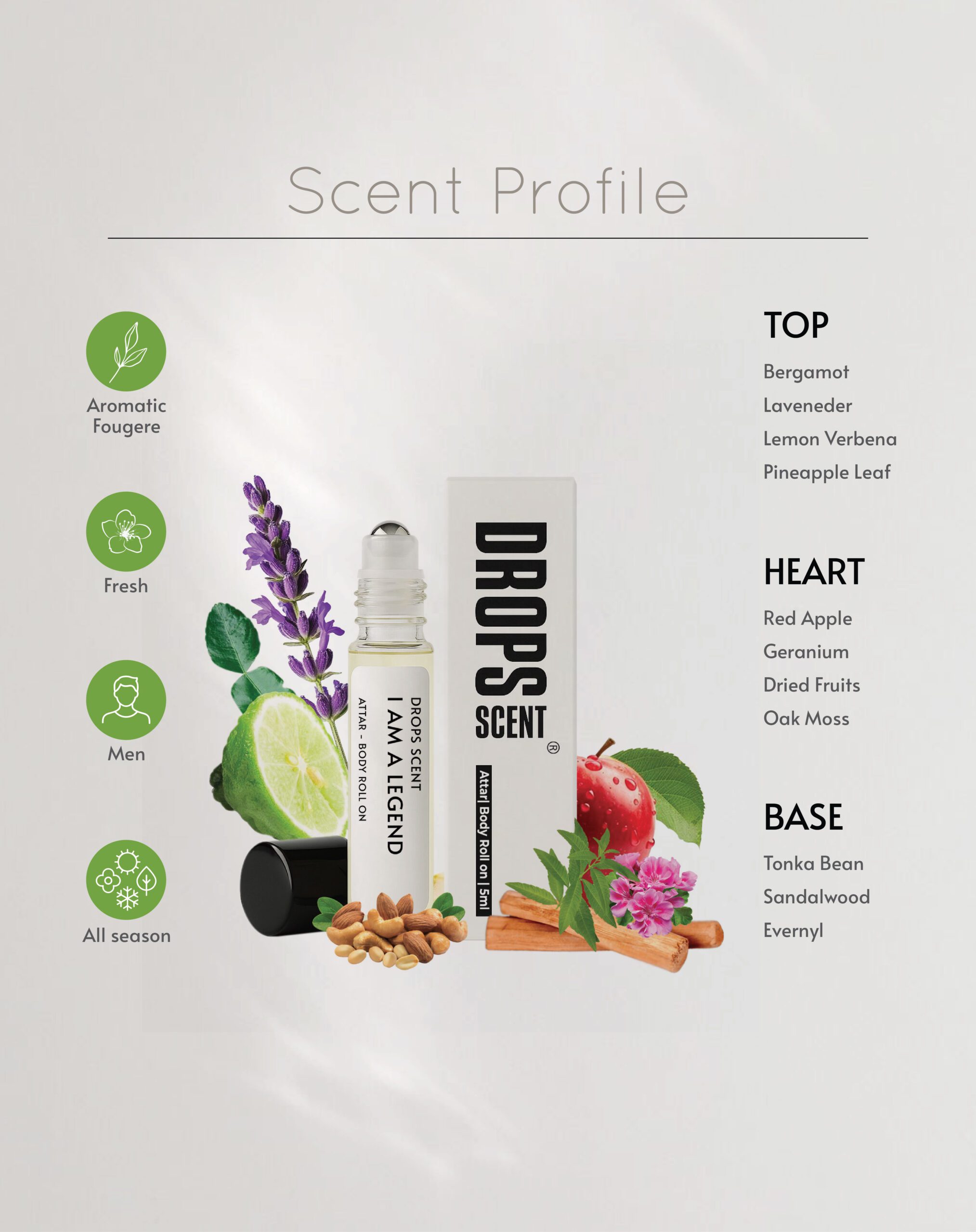 I am a Legend is a fragrance that speaks to the confident, charismatic man — someone who lives with purpose and leads with authenticity. Fresh yet deep, modern yet timeless, this scent embodies quiet power and emotional depth.