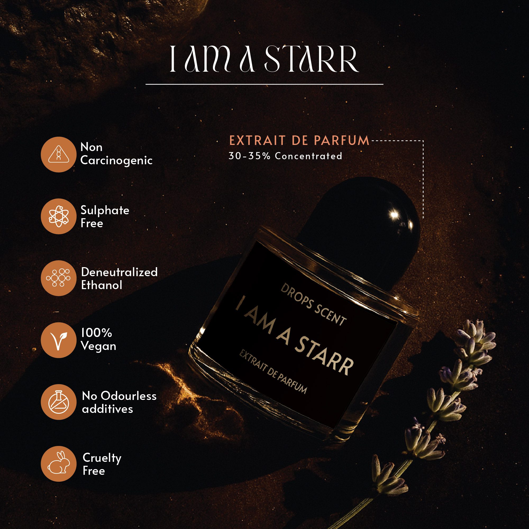 Perfect for winter evenings and special occasions, this fragrance is for those who dare to be unforgettable. Indulge in the essence of sophistication and rebellion with every spray of I Am A Starr—a scent that truly commands attention.