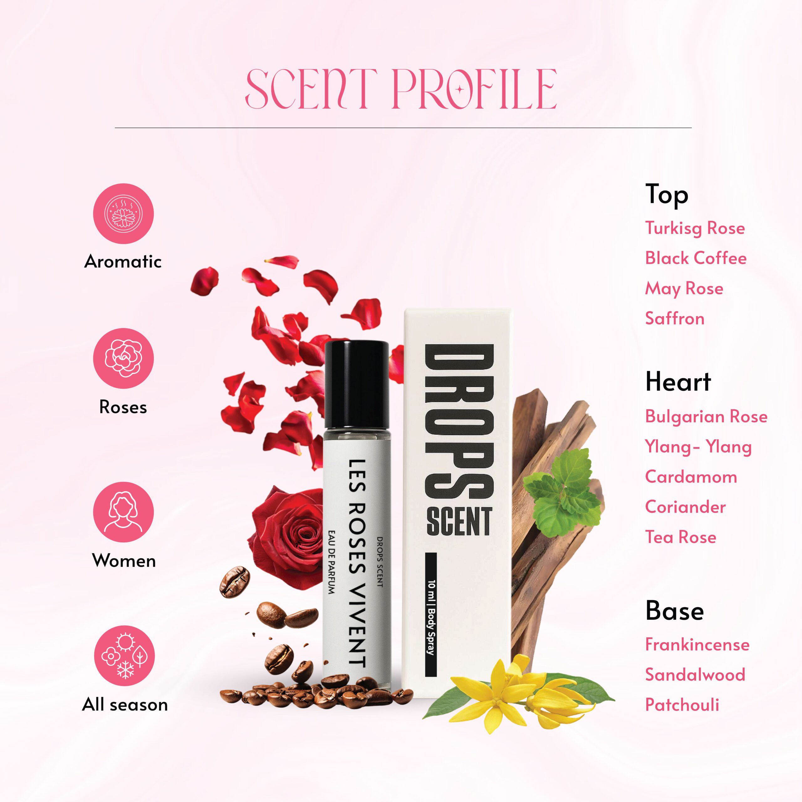 Experience the allure of Les Roses Vivent, a captivating fragrance crafted for the modern woman. This luxurious scent opens with vibrant notes of May rose, saffron, Coffee and Turkish Rose, leading to a heart of sumptuous Bulgarian and Tea roses. The fragrance settles into a warm base of frankincense, patchouli, and sandalwood, creating a sophisticated and inviting aroma. Perfect for cooler seasons and evening occasions, Café Rose embodies elegance and sensuality, making it a must-have for those who appreciate complex and enchanting scents.