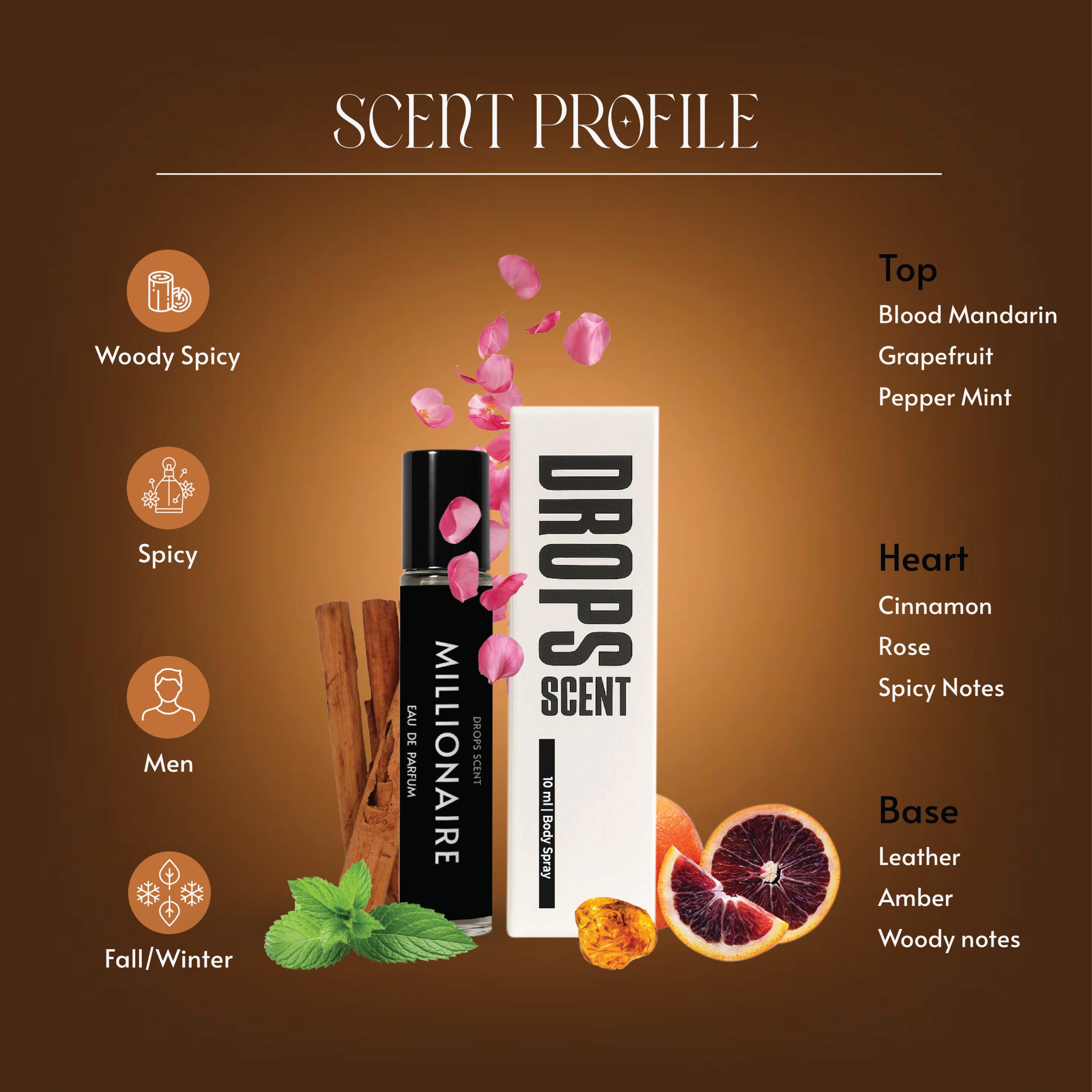 Millionaire | Eau de Parfum | Perfume for Men | Long Lasting Perfume | Sweet Leather Fragrance | Men’s Fragrance | 25% Oil Concentration  | 10Ml Travel Bottle