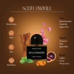 Millionaire is a captivating blend of contrasts, beginning with a fresh and invigorating burst of blood mandarin, juicy grapefruit, and cool mint. At its heart, the fragrance reveals a spicy-sweet combination of warm cinnamon, delicate rose, and exotic spices, creating a rich and magnetic allure. The base notes ground the scent with the sensual depth of leather, amber, and woody accords, adding a smooth, opulent finish. This masterful composition is bold, luxurious, and undeniably seductive.As it unfolds, the creamy warmth of vanilla and the sensual depth of tonka bean, cashmeran, and amber create a lasting impression.