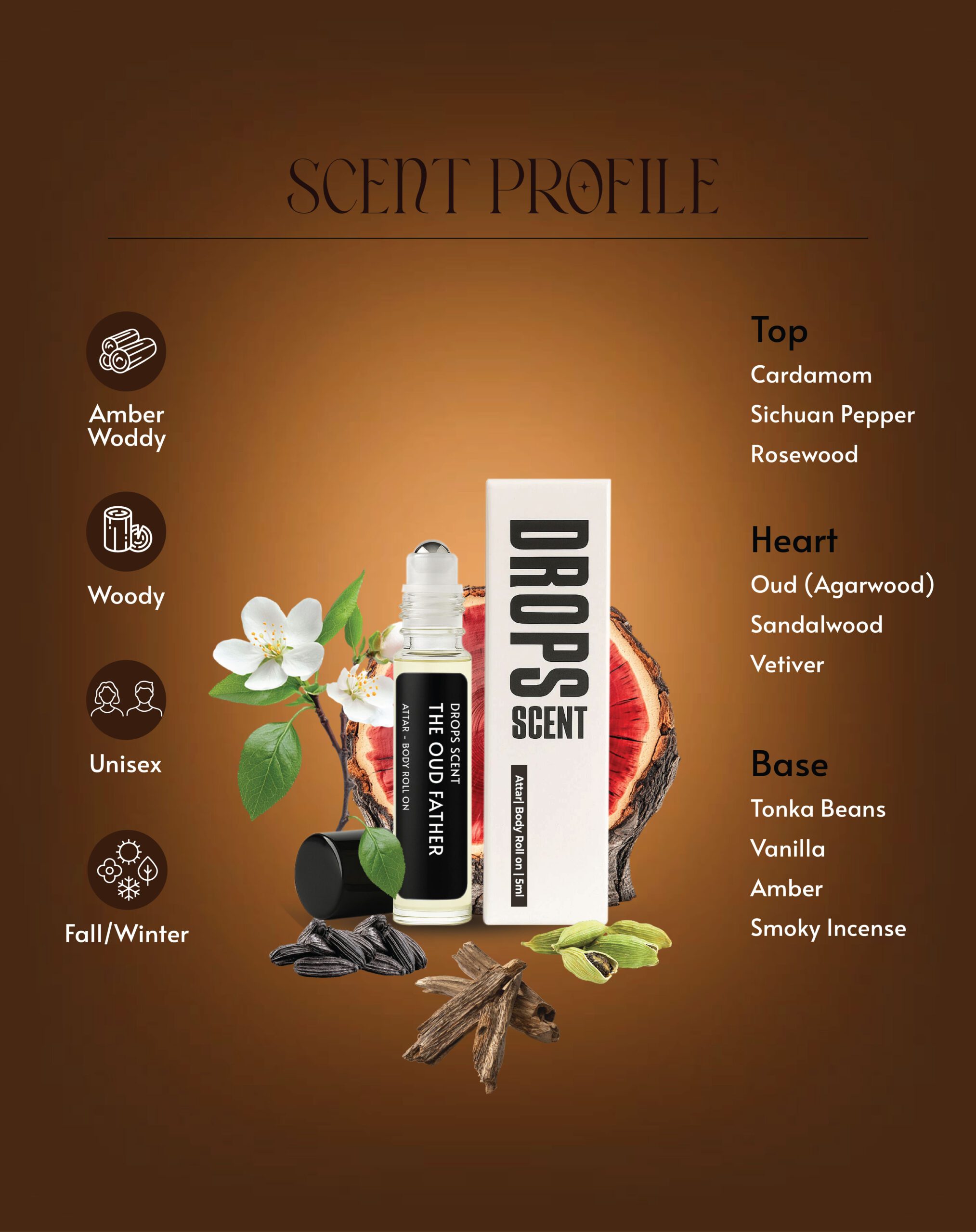 The OudFather opens with a refined burst of cardamom and rosewood, delivering a spicy warmth that immediately captivates. As the scent unfolds, a heart of sandalwood, vetiver, and rare oud emerges, creating a smoky, woody core that exudes sophistication. The base reveals a sensual blend of tonka bean, vanilla, and amber, adding depth and a lingering, velvety finish.