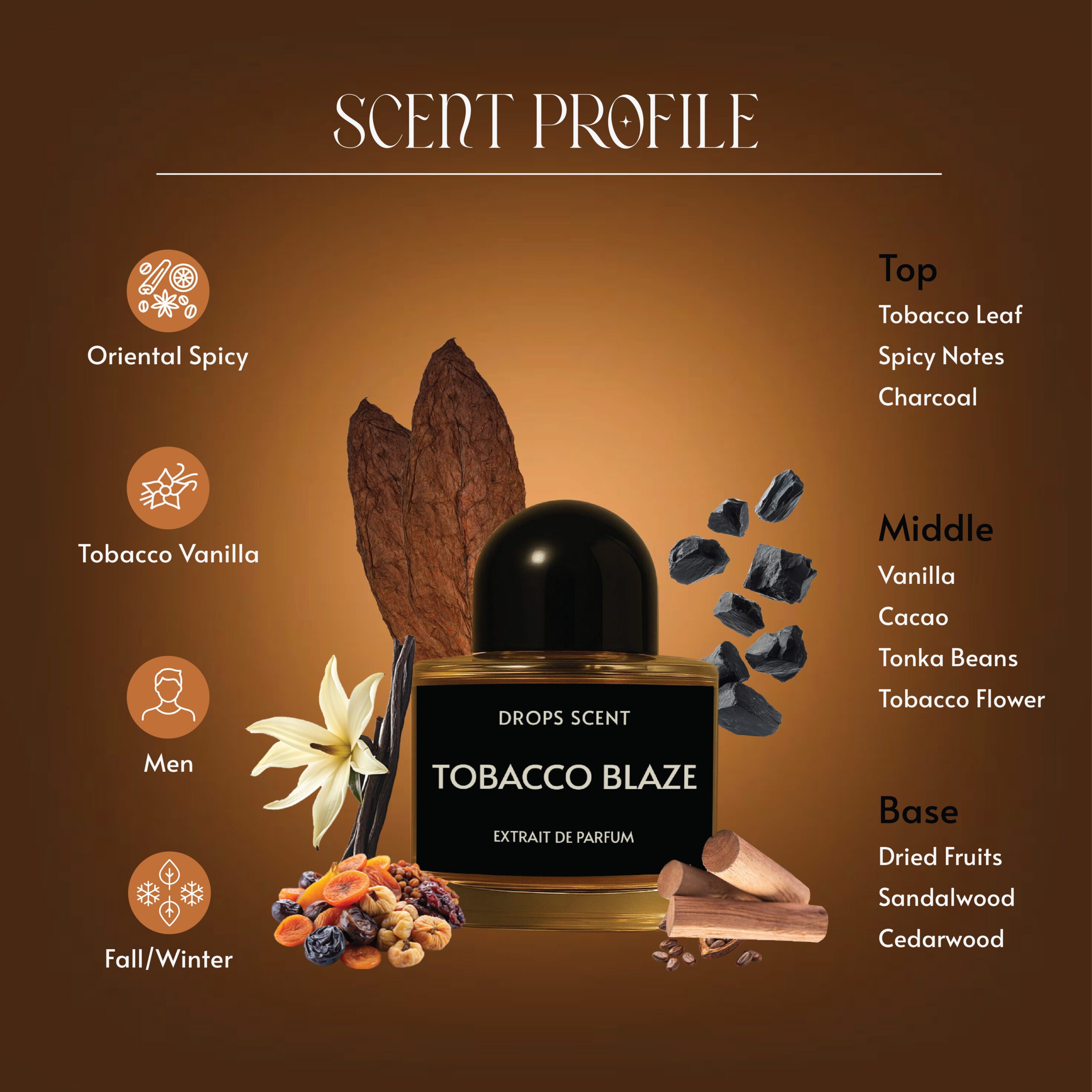 Perfect for cooler seasons, Tobacco Blaze is a bold and sensual fragrance that balances the nostalgic with the modern, making it an ideal choice for those who appreciate refined, yet daring scents.